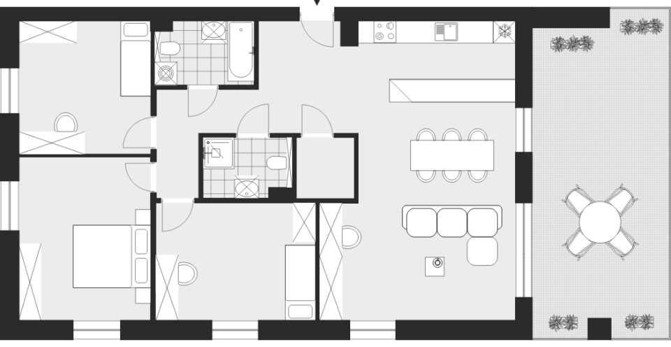 - Charakterystyka mieszkania: 99,67 m², 4 pokoje, 2 łazienki; stan: deweloperski